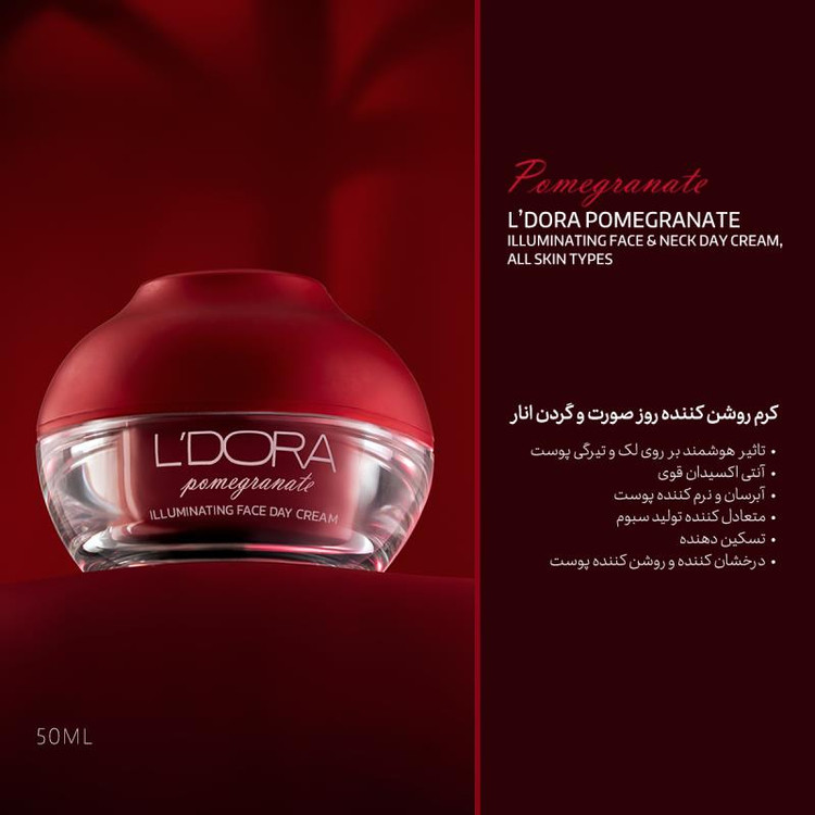کرم روشن کننده روز صورت و گردن انار مناسب انواع پوست، 50 میلی لیتر