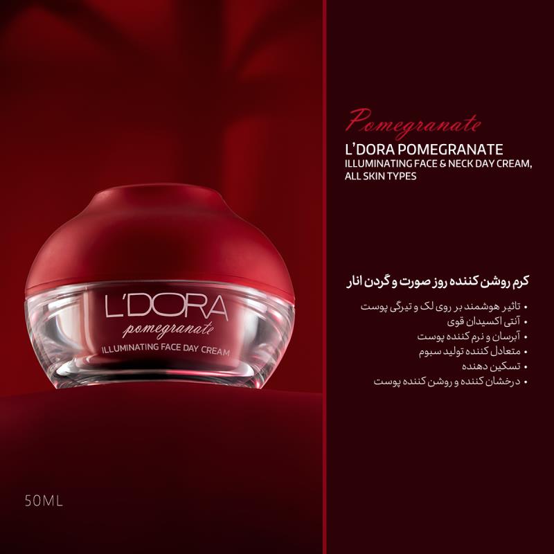 L'DORA POMEGRANATE ILLUMINATING FACE & NECK DAY CREAM, ALL SKIN TYPES, 50 ml